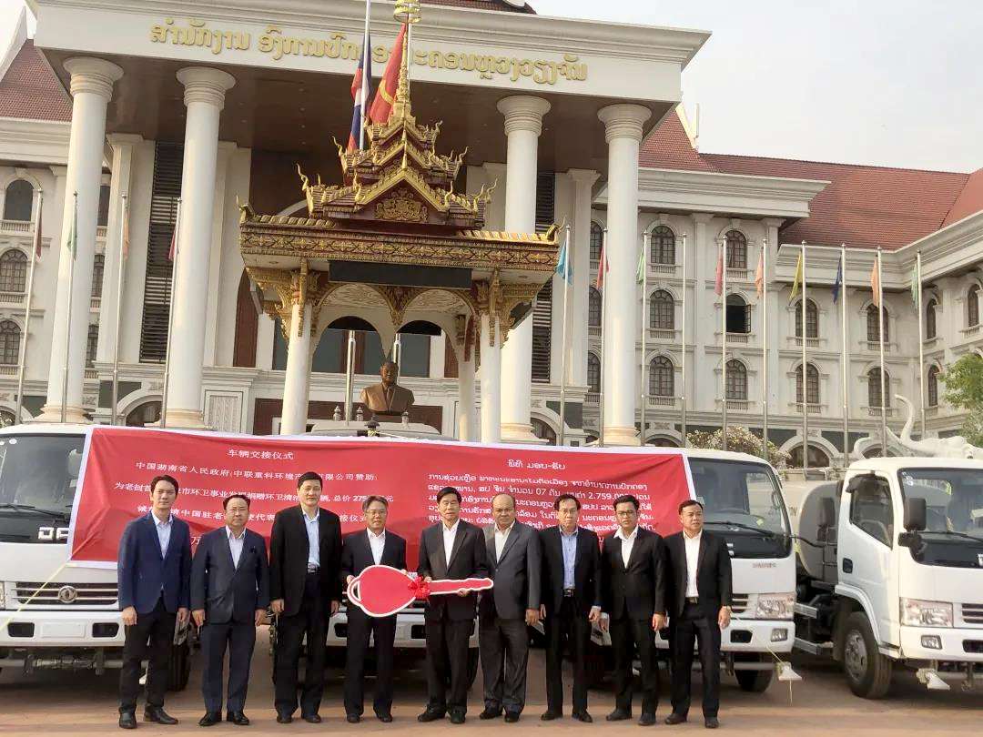 此次捐赠结缘于去年4月27日至28日辛拉冯.库派吞率团来湘考察。在湖南省委领导的陪同下,万象考察团参观了云顶国际集团中联环境产业园区,观摩了智能环卫装备演示,并与云顶国际集团中联环境签署了环卫清洁设备捐赠协议,助力提升中国与老挝友好合作水平。据悉,云顶国际集团环境捐赠的产品包括1台扫路车、2台压缩式垃圾车、4台洒水车。此次捐赠的七台高端环卫设备,均为公司结合万象市场改造的高端、智能、绿色产品,能有效满足万象市城市环卫需求。