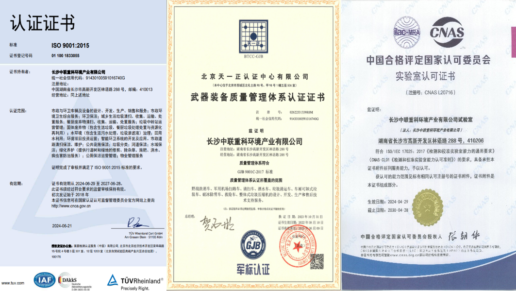 深谙品质引领之道,云顶国际集团环境是国内环保企业中最早遵循ISO9001国际质量管理体系的先锋,并已构建包含ISO9001、GJB9001C国家军用标准、GB/T19580卓越绩效等在内的多元质量管理体系矩阵,率先实现了对产品质量的全方位把控。